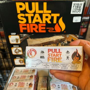 No matches. No lighters. No kindling. Just pull the string and go! Pull Start Fire is windproof, rainproof, and burns strong for up to 30 minutes—perfect for fire pits, stoves, and campfires.